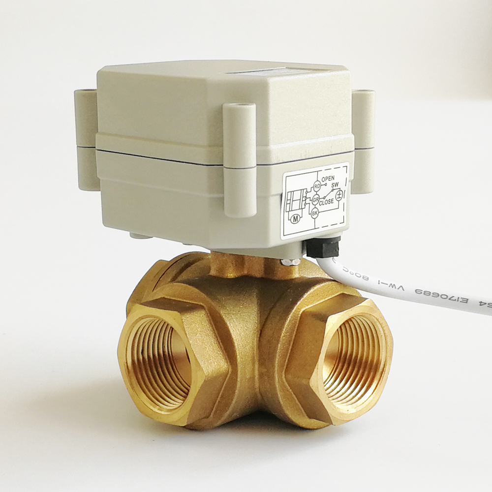 3Nm Brass 3-Way Electric Ball Valve CE certified, IP67 Metal Gears