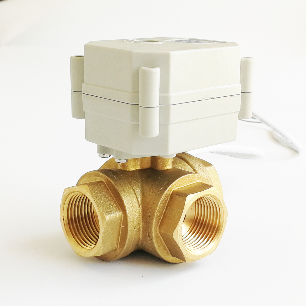 3Nm Brass 3-Way Electric Ball Valve with position indicator CE certified, IP67 Metal Gears