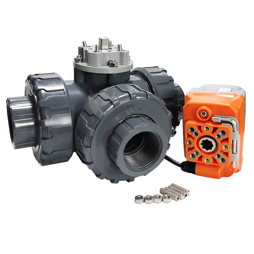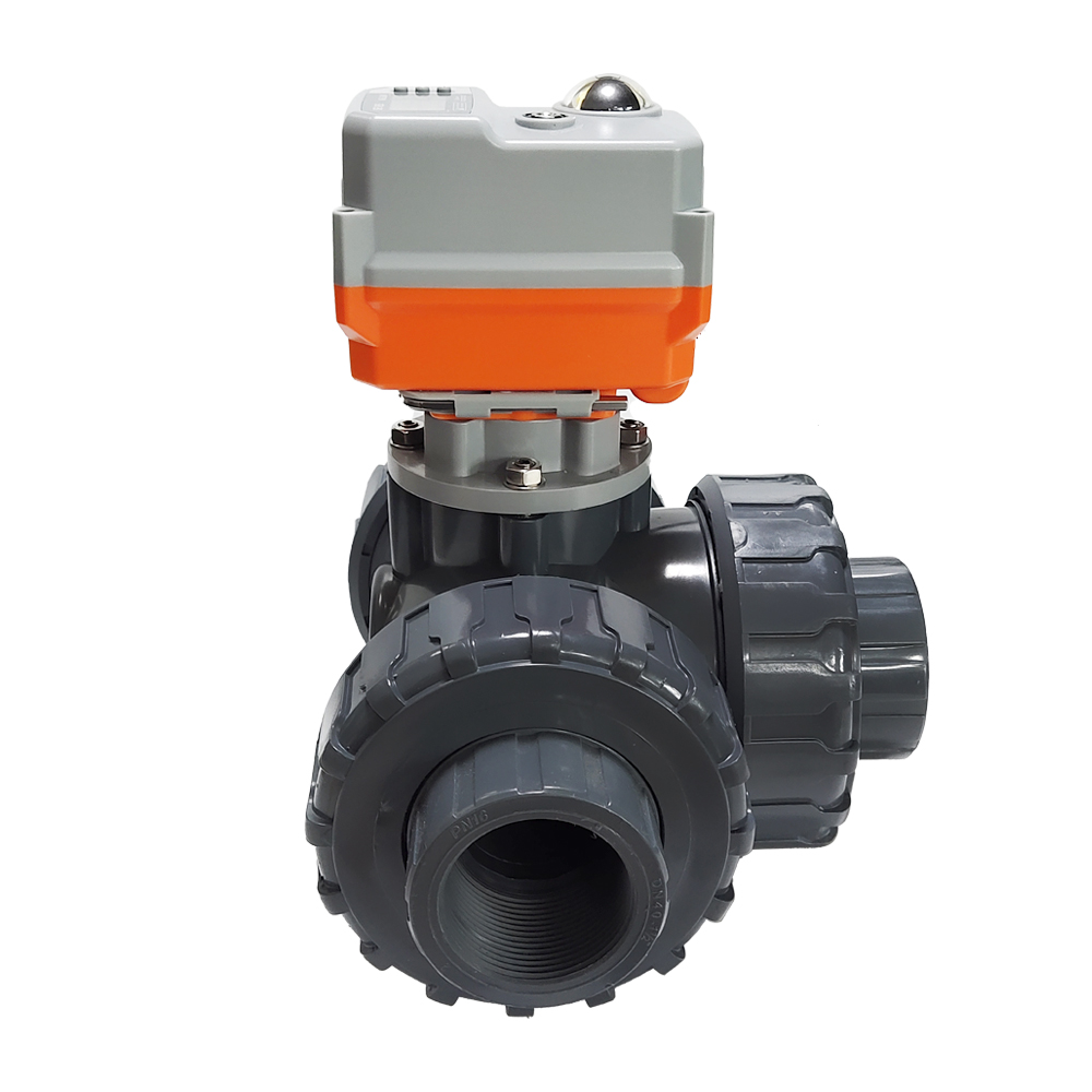 20Nm 3-Way UPVC True Union End Motorized Ball Valve with BSP, NPT or Glue End with ANSI, DIN or JIS standard