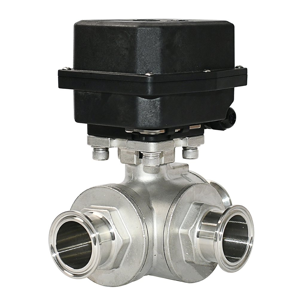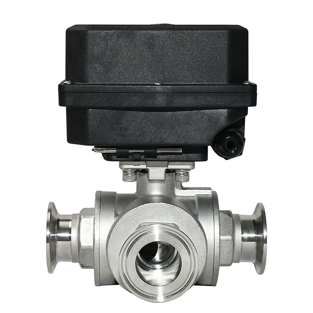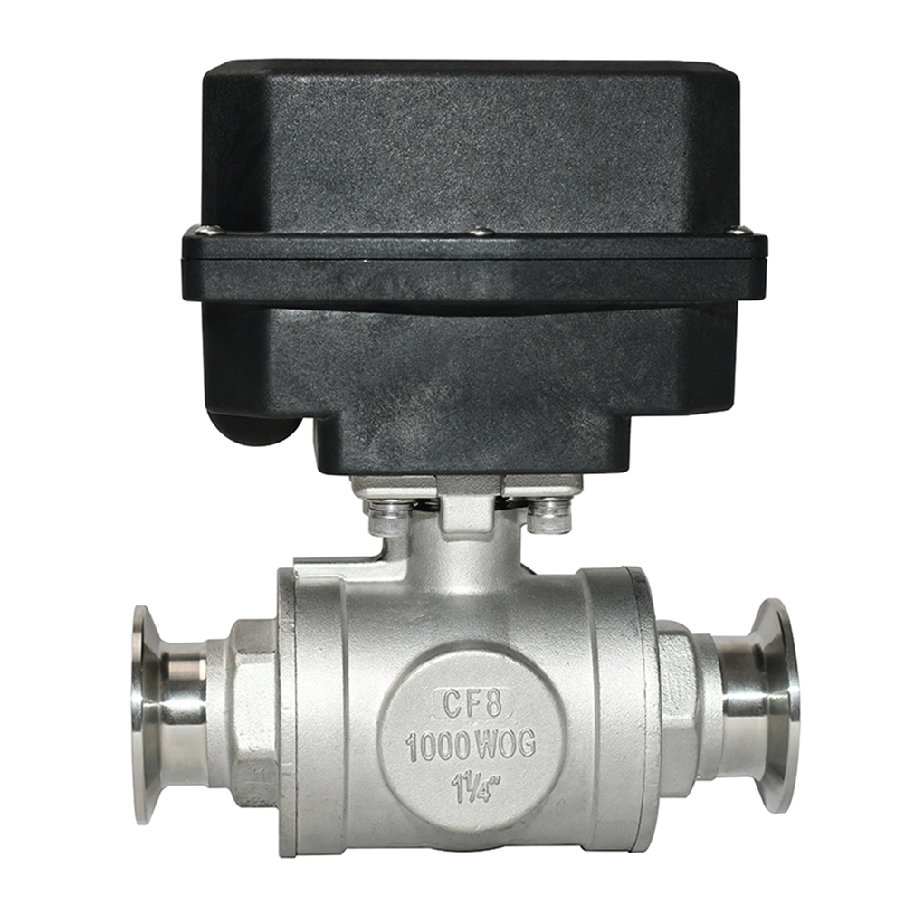 50Nm 3 Way Tri-Clamp type Electric Ball valve with Sanitary Stainless Steel quick install